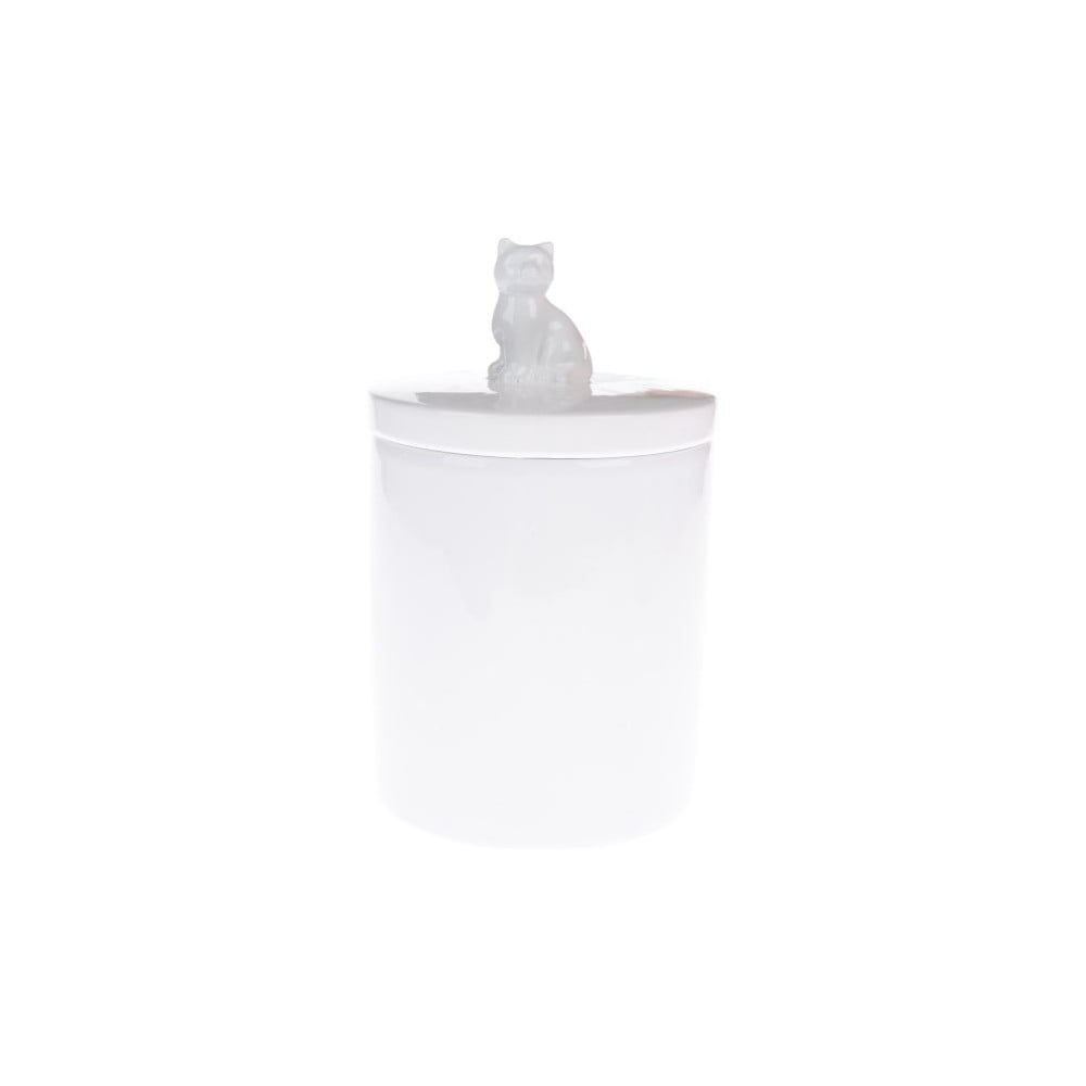 Bílá keramická dóza na krmivo pro kočky Dakls