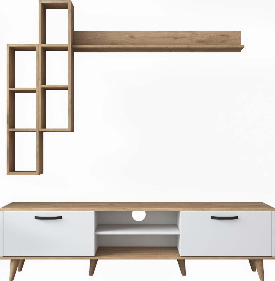 Bílo/přírodní TV sestava v dekoru ořechu 180x48 cm Veronica – Kalune Design