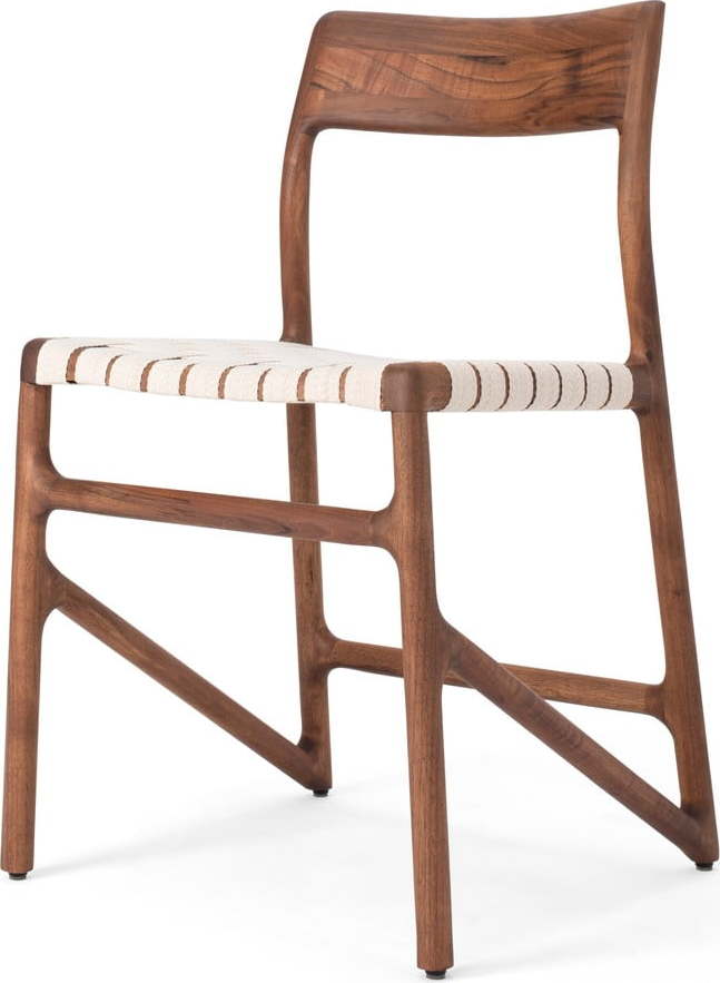 Židle je vyrobena z masivního olejovaného ořechového dřeva, které zaručuje dlouhou životnost a odolnost. Sedák je tvořen tkanými bavlněnými popruhy, které poskytují pohodlné posezení.