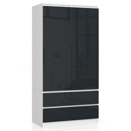 Parametry produktu Šatní skříň S90 2 dvířka 2 zásuvky bílá/grafit lesk