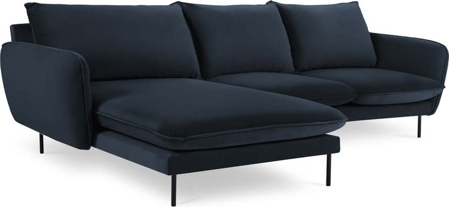 Tmavě modrá sametová rohová pohovka (levý roh) Vienna – Cosmopolitan Design
