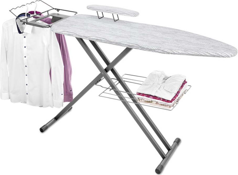 Žehlicí prkno Fancy Home je díky výsuvnému rukávníku ideální pro snadné žehlení košil a úzkých kalhot. Zároveň nabídne také výsuvný věšák a spodní mřížku sloužící pro odložení již vyžehleného oblečení. Konstrukce je vysoce stabilní a její výšku lze nastavit v rozmezí od 73 do 90 cm. Dobré vědět: Velikost žehlicí plochy je 116 x 36 cm.